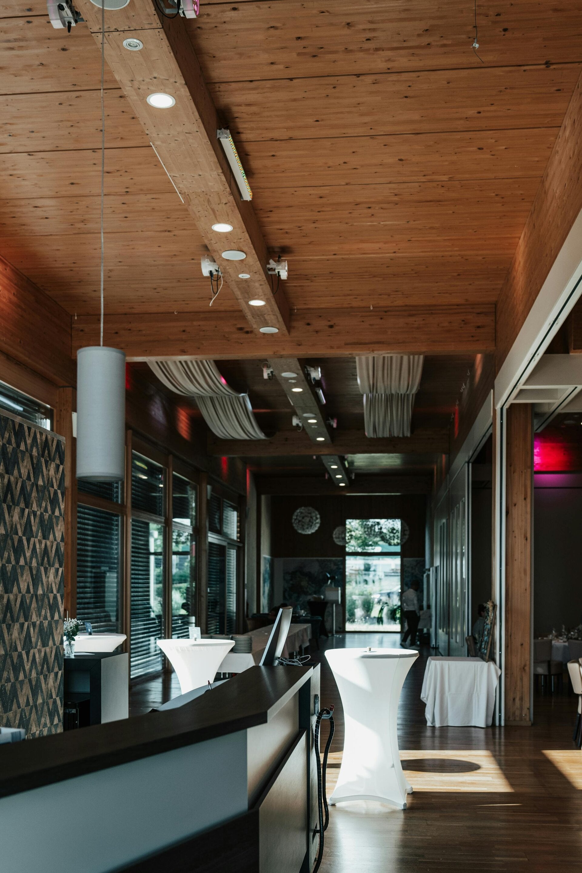 Découvrez l'intérieur raffiné de L'Embarcadère, où la pureté du décor et la légèreté de l'atmosphère créent un espace unique et accueillant. Notre restaurant de poisson pêché et de fruits de mer vous promet une expérience inoubliable.